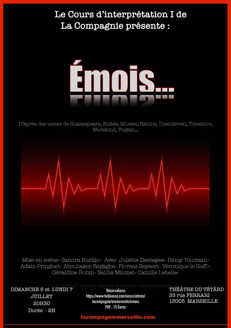 Le cours d’interprétation 2025 débute le mercredi 1er octobre 2025 à l’École de théâtre « La Passerelle » 2 rue du Jarret, 13004 Marseille.